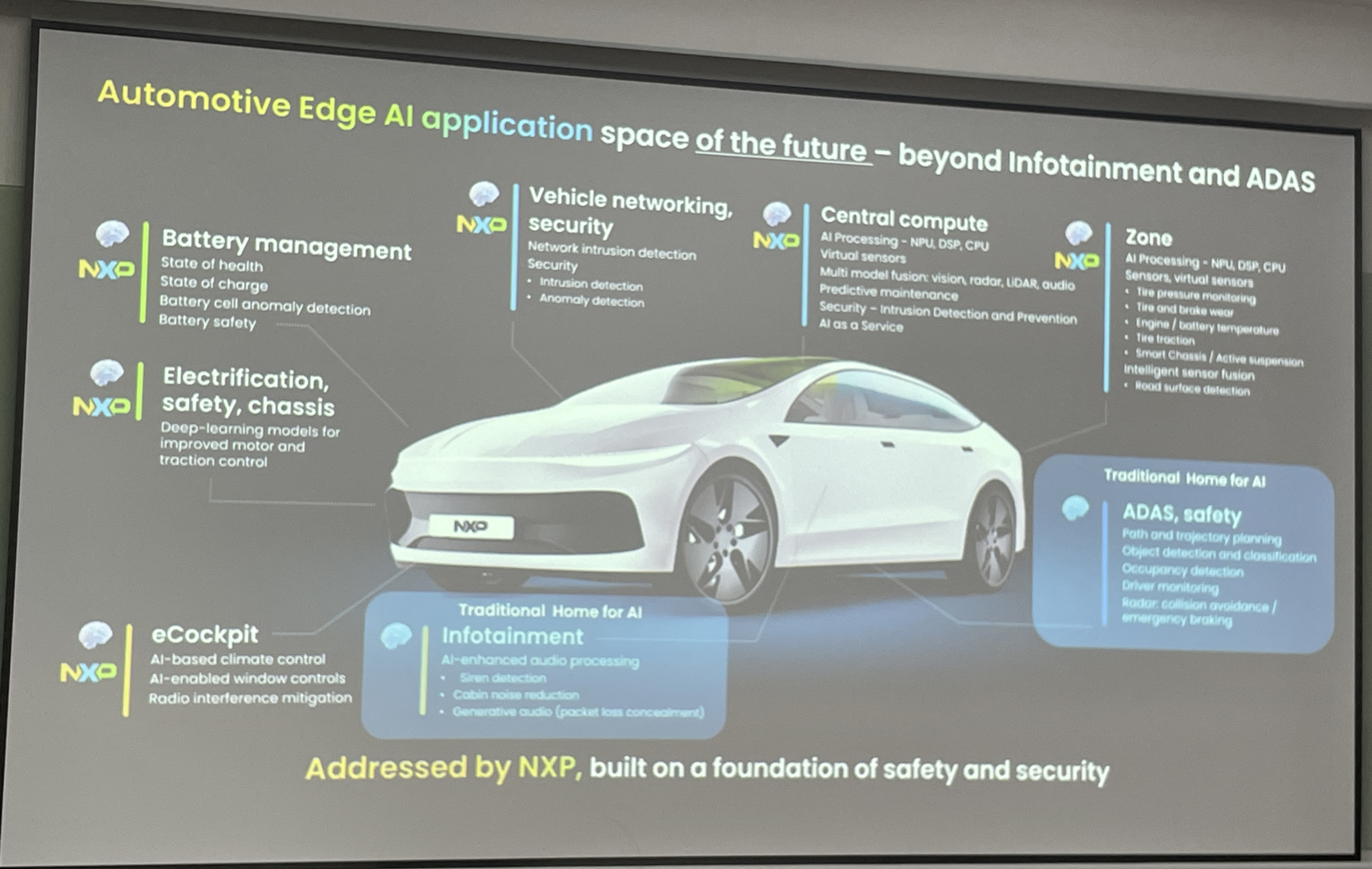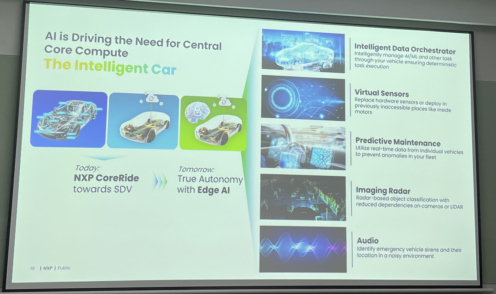 与此同时,S32N7在AI部署上也颇具亮点。其AI能力专门面向车辆核心功能。据悉,其内置eIQ®Neutron NPU,基础算力约2TOPS。Jens Hinrichsen表示,这一算力虽不突出,但已足够支撑车辆核心的AI功能。