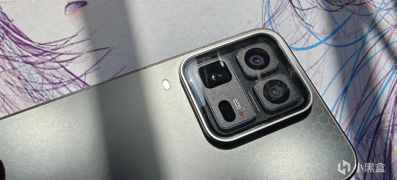 仔细观看背板镜头都有一层悬浮感,官方称之为未来舱,确实有点太空飞行舱的味道。而且模组和背板的衔接也很有水平,是古铜色的过渡。模组里面还有ULTRA的图样和红色的小风扇图案,这也证明了手机的另一个特点:手机拥有主动散热的内置风扇。