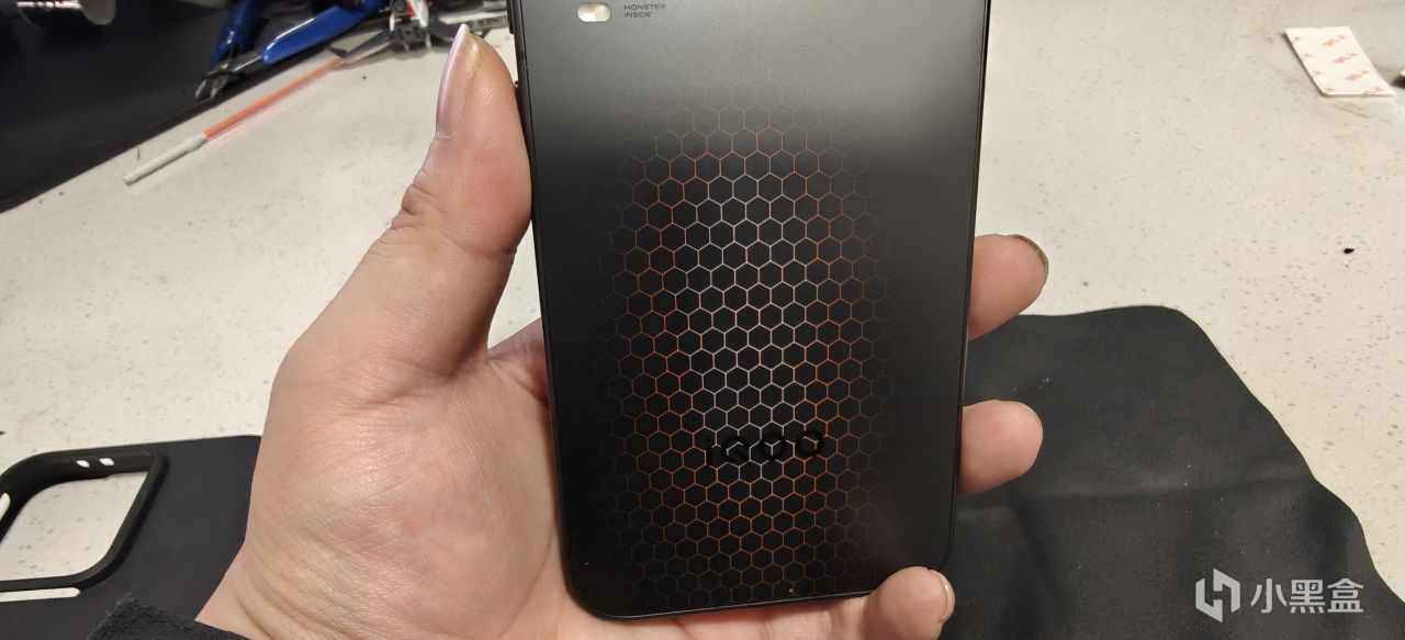 里面的说完了,看看外面的吧。这次的外观变化的十分大胆而又低调。低调是指依旧是黑白配色,大胆指的是你稍微倾斜手机的背面就可以看到蜂巢纹路结构。而且黑白两色的蜂巢颜色也不不同,黑色称之为《赛博朋克2077》,白色称之为《银翼杀手2049》。不得不说,确实有那种不明觉厉的感觉。